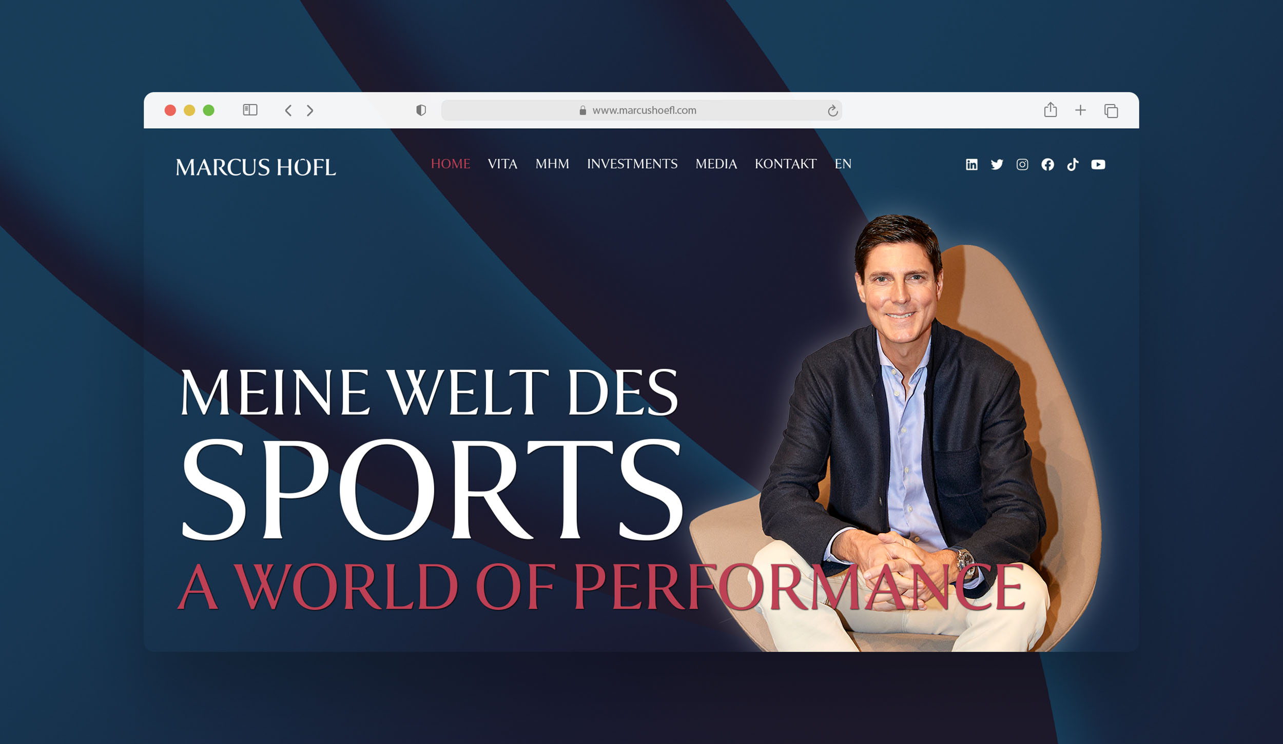 Die Ideen & Projekte von Marcus Höfl erreichen Millionen von Menschen. Nicht ohne Grund zählt er zu den einflussreichsten Sportmanagern unserer Zeit. Die für ihn kreierte Brand sowie die Website bestechen durch schlichte Eleganz und setzen den Investor und seine vielfältigen Talente gekonnt in Szene.